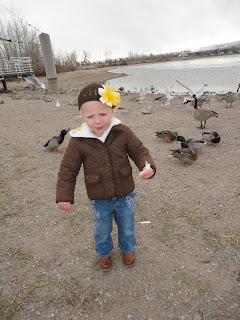 We went out on an extremely cold day to feed the ducks  and geese because the girls really wanted to.